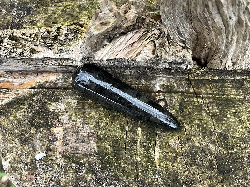 Larvakite is a grounding stone with flash like one would find in Moonstone. It repels negative energy and allows one to look into the past for answers.