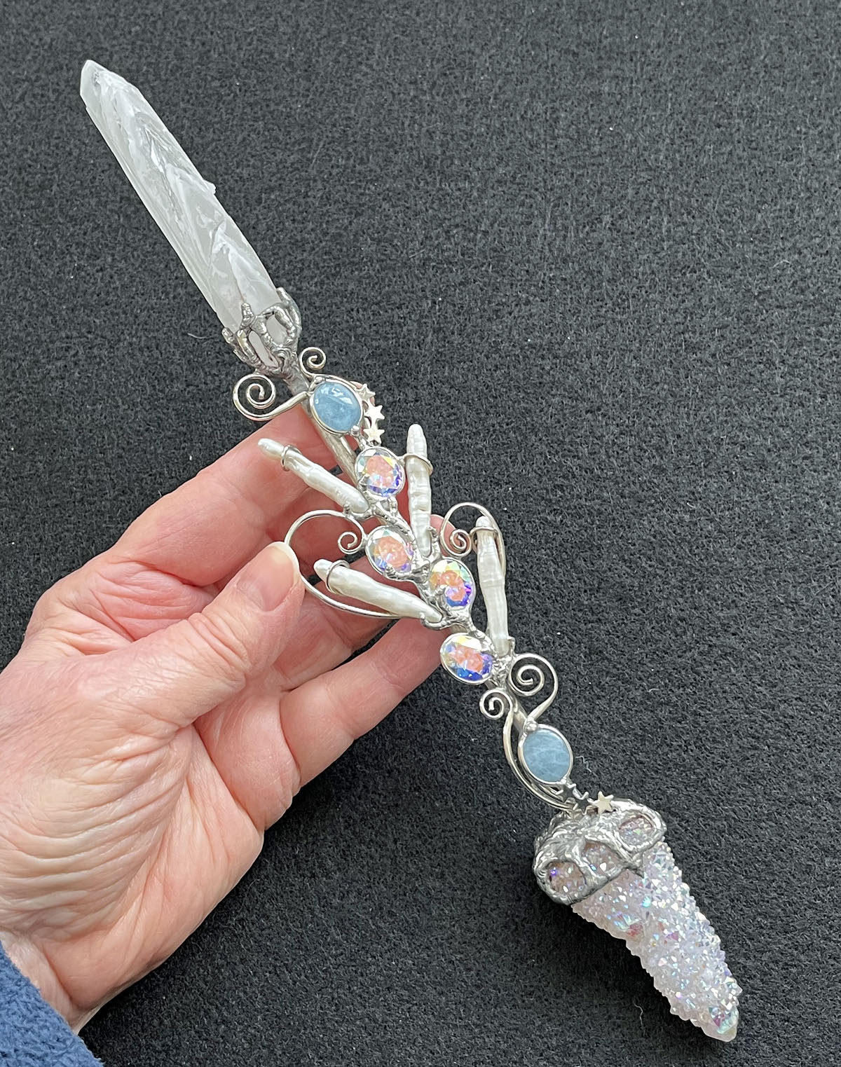 This stunning wand was made by the one and only Bob Geisel of Magical Delights. He puts love and intention into every wand he makes and you can feel it before you even open the box. This one is truly one of a kind.