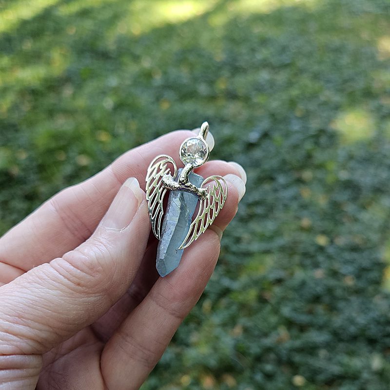 Magical Delights Danburite and Aqua Aura Angel Pendant (mdp94)