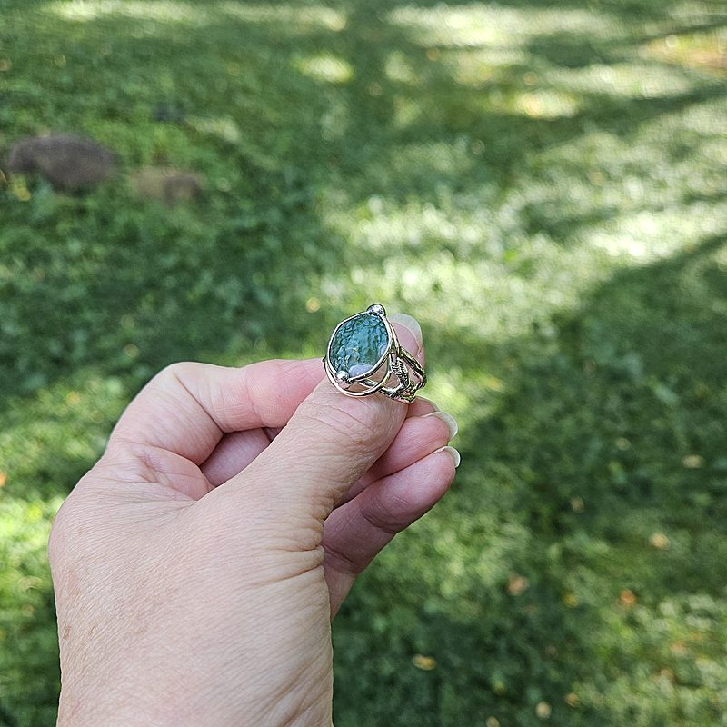 Magical Delights rings are one-of-a-kind. They are made with sterling silver, 14 ct. gold fill on sterling or a combination of both. Stones are gemstones. Rings are adjustable to within 2-3 sizes, and are small, medium or large.